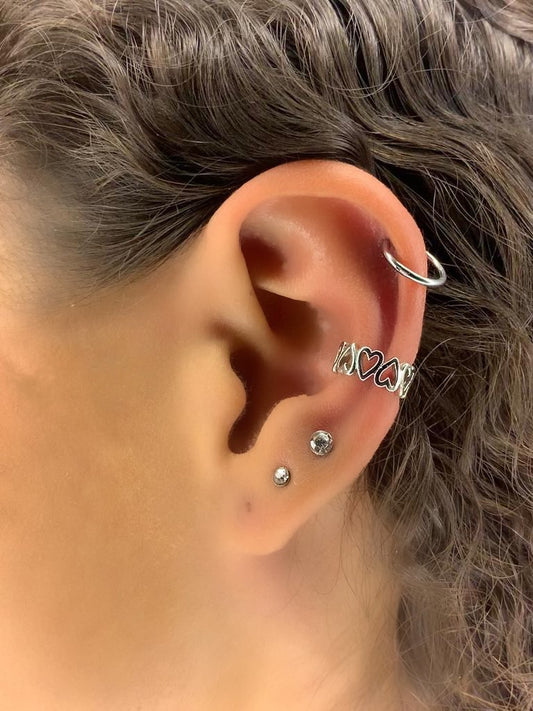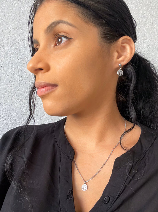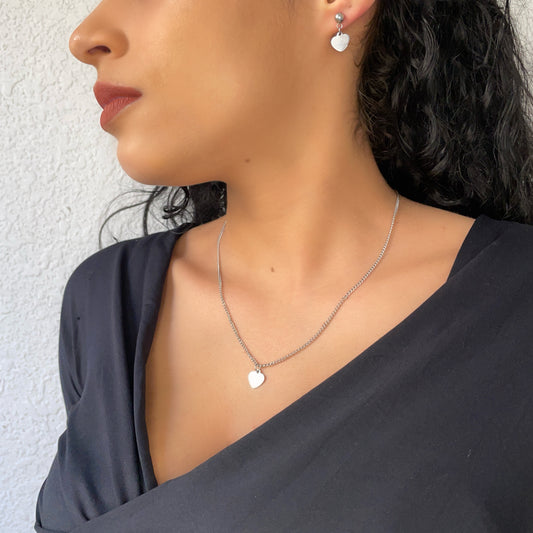 Brinco pequeno pino bolinha e pingente coração de aço liso chapado