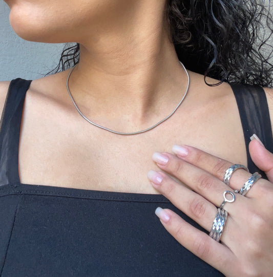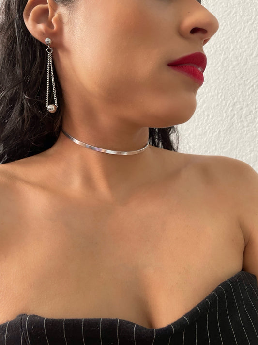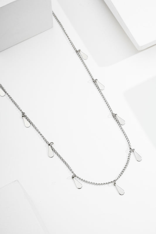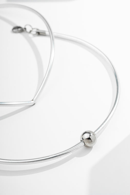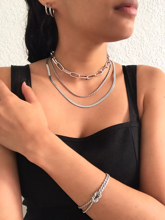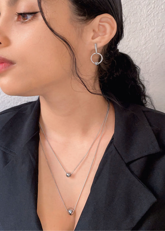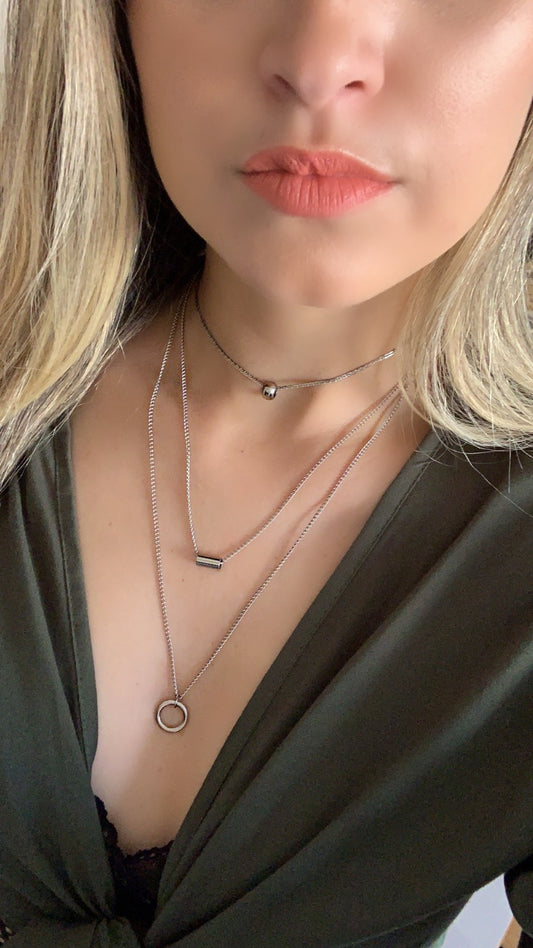 Colar triplo com bolinha, tubinho e argola vazada na ponta