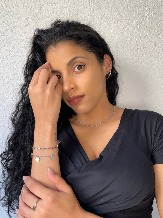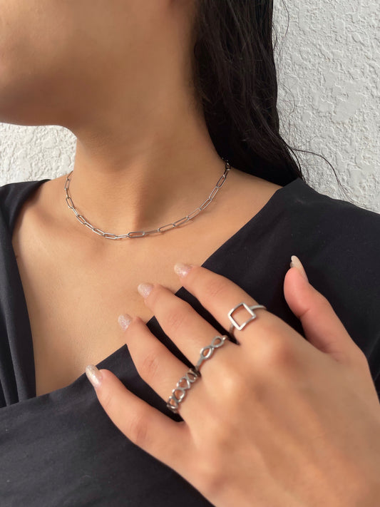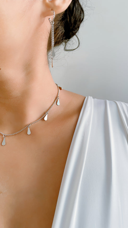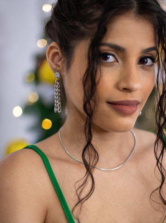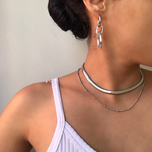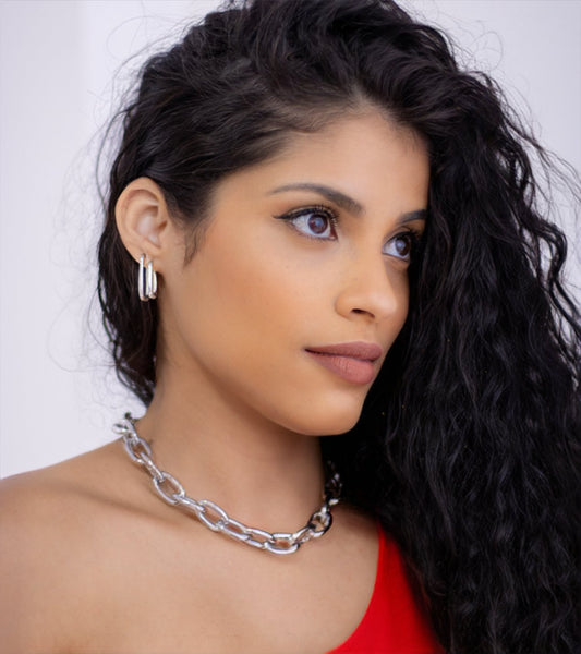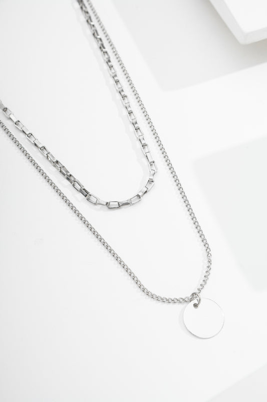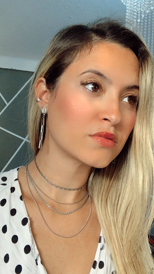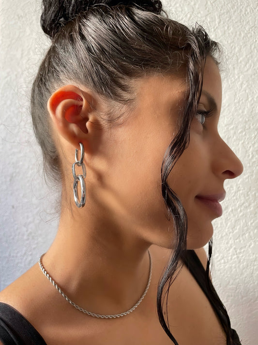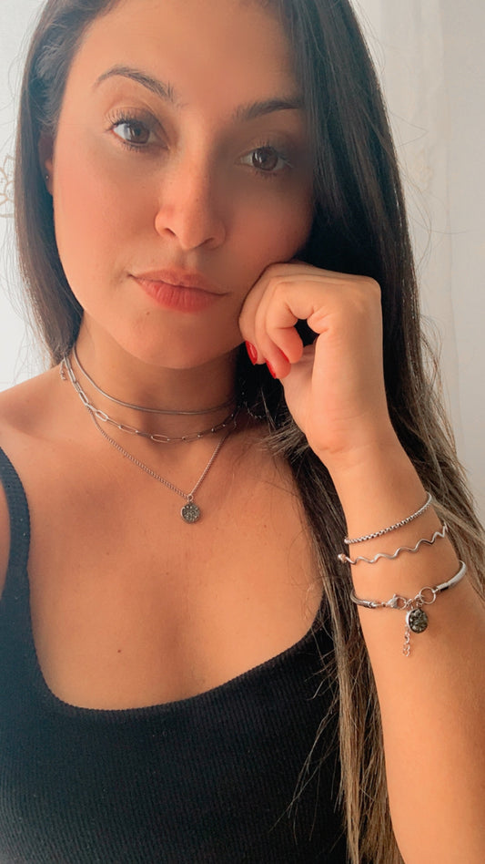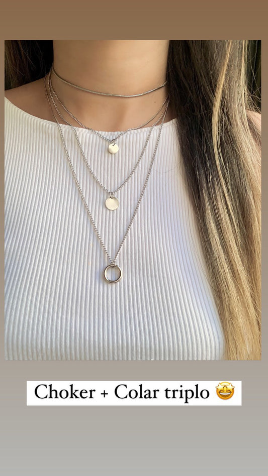 Colar Triplo medalhas e argola vazada com corrente de aço