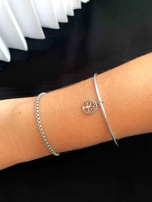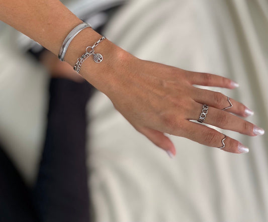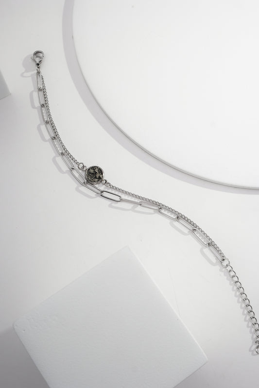Pulseira dupla com pedra pirita e corrente cartier larga de aço inox
