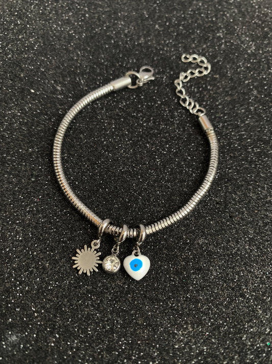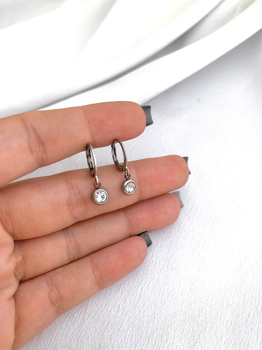 Argolinha trava encaixe com pingente ponto de luz de aço