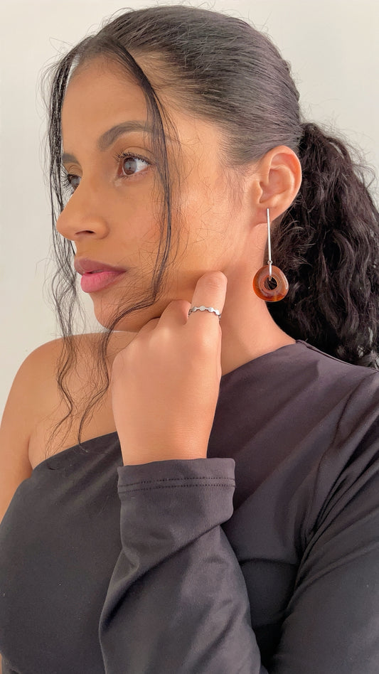 Brinco Pino palito fino rosquinha acrílico caramelo