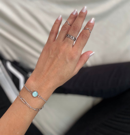 Pulseira dupla com pedra da lua bolinha e corrente veneziana redonda