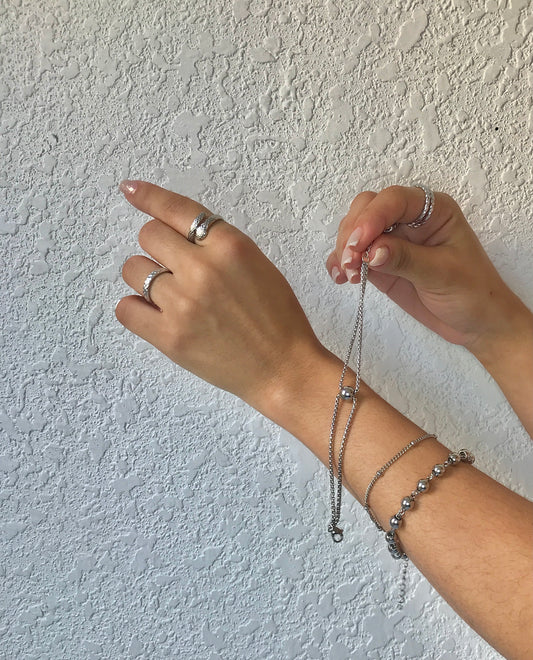 Pulseira corrente veneziana redonda com bolinha no meio invertido de aço inox