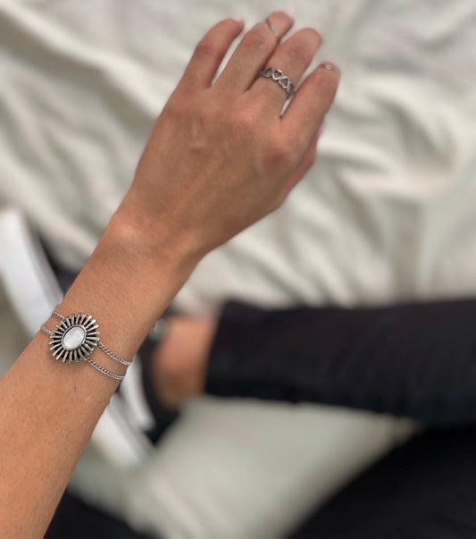 Pulseira peça sol off white com corrente de aço inox