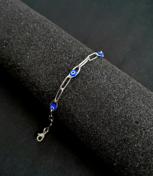 Pulseira olho grego com corrente elo largo fino de aço