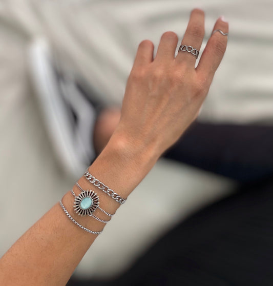 Pulseira peça sol azul Mar com corrente de aço