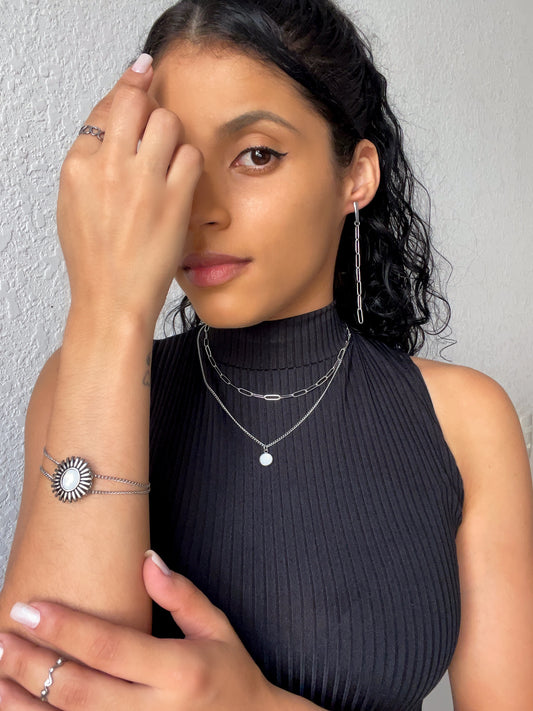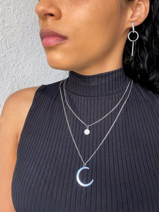 Colar duplo corrente cartier larga e chaton preto cascalho de aço